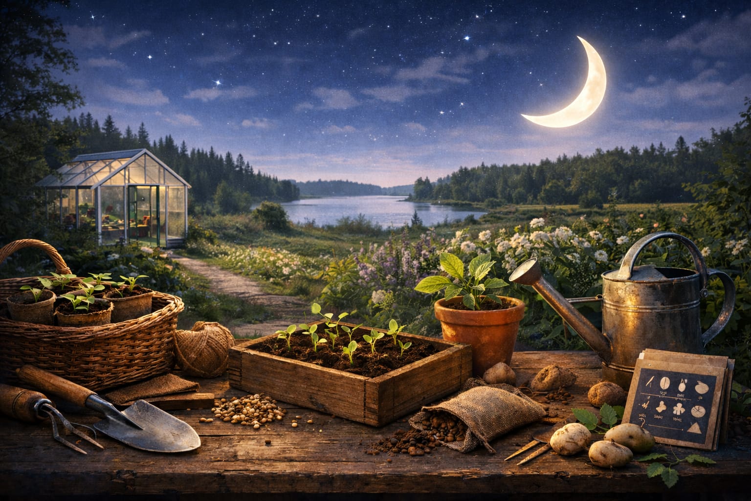 Kuu puutarhassa